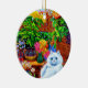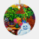 Ornament mit Louis Wains Tiermalerei Meister der Katzen-Uni (1860-1939). Eine wohlüberlegte, weiße Katze mit auffallend blauen Augen liegt wunderbar neben einer lebhaften Auswahl an wunderschönen Blume. Die majestätische Uni der Katze liegt im Hintergrund unter einem rosa und blauen Himmel. Ein wunderbares Geschenk für Katzenliebhaber und englische Kunst.