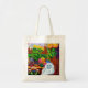 Tote Tasche mit Louis Wains Tiermalerei Master of Cat Uni (1860-1939). Eine wohlüberlegte, weiße Katze mit auffallend blauen Augen liegt wunderbar neben einer lebhaften Auswahl an wunderschönen Blume. Die majestätische Uni der Katze liegt im Hintergrund unter einem rosa und blauen Himmel. Ein wunderbares Geschenk für Katzenliebhaber und englische Kunst.