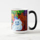Magische Tasse mit Louis Wains Tiermalerei Meister der Katzenjacke-Uni (1860-1939). Eine wohlüberlegte, weiße Katze mit auffallend blauen Augen liegt wunderbar neben einer lebhaften Auswahl an wunderschönen Blume. Die majestätische Uni der Katze liegt im Hintergrund unter einem rosa und blauen Himmel. Ein wunderbares Geschenk für Katzenliebhaber und englische Kunst.