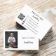 Ein klassischer weißer Hintergrund. Personalisieren Sie Foto, Titel, Firmenname/Name und Text auf der Vorderseite und fügen Sie diese hinzu. Schwarzer Text. Zurück: Vorlagen für Ihren Namen, Titel, Telefonnummer, E-Mail- und Website-Adresse, Ihren eigenen QR-Code für Ihre Website oder Ihr Social-Media-Konto. Facebook und Instagram Icons/account.