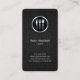 Ce design carte de visite de traiteur élégant et robuste présente une subtile texture grunge noire foncée dans l'arrière - plan. La partie supérieure de la carte a une icône chromée de taille moyenne d'une couverts. Votre nom et votre titre apparaissent au milieu, en lettres claires et faciles à lire, tandis que vos coordonnées apparaissent sur la partie inférieure de la carte en lettres plus petites mais propres et lisibles. Parfait pour la nourriture, restaurant, repas, restauration, thème de service, mais peut être utilisé pour presque n'importe quelle entreprise ou industrie.