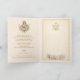 Inside, the card opens to reveal the full Hail, Holy Queen prayer, thoughtfully arranged on a gentle Marian damask background inspired by historic church textiles. An elegant Auspice Maria monogram crowns the opposite panel, accompanied by coordinating florals that echo the front design in a restrained and prayerful manner.