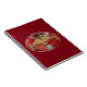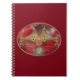 Ein stilisiertes Katzengesicht aus glühenden Goldkurven und -kurbeln, mit breiten grün-goldenen Augen, vor einem Hintergrund aus rotem Fraktal.