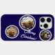 A customizable collage of 3 cat photos (generative content) and text, your Christmas gift as a iPhone / iPad blue case for cat loves.