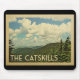 Das Catskills New York Design im Vintage Travel Stil mit einem weiten Blick auf die Natur mit Bäumen und Bergen.