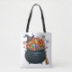 Kauldron von Giggle & Gummies Tote Tasche. Ein fröhlicher Kessel, voll von Süßigkeiten, die wie Konfetti explodieren und stolz einen Hexenhut spielen. Der Broomstick-Kumpel lässt sich nah, eindeutig gewartet für den süß angeheizten Liftoff, Halloween’s glücklichstes zuckergetriebenes Hexenmobil!