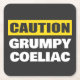 Funny AUTION GRUMPY COELIAC Untersetzer. Wenn Sie irgendwelche Coeliacs / Celiacs kennen, werden Sie wissen, wie gruselig sie bekommen können, wenn sie glutenfreies Essen nicht finden können. Ändern Sie den weißen Text auf diesem Untersetzer in alle Wörter, die Sie möchten.