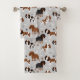 Cute Cavalier King Charles Spaniel avec des manteaux noirs, bruns et blancs avec des os de chien éparpillés et des motif de pawprints.