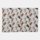 Niedlicher Cavalier King Charles Spaniel mit schwarzen, braunen und weißen Mänteln mit verstreuten Hundeknochen und Pappmustern.