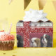 Das hier ist ein Urlaubspapier mit einem originalen Foto von zwei schönen Cavalier King Charles Spaniels, einem Blenheim und einer Tricolor, umgeben von einer roten Weihnachtsgrenze.