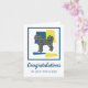 Silhouette de chien Cavapoo en bleu jaune et noir lignes de grille moderne motif. Félicitations pour votre nouveau chiot à l'extérieur et le message drôle à l'intérieur peut être changé à tout ce que vous voulez.