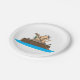 Ein Caveman in einem Kanu, der wegpaddelt. Dieses Design wirkt auf diese Paper-Teller sehr effektiv
