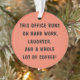 "CE BUREAU TRAVAILLE DUR, RIRE ET BEAUCOUP DE CAFÉ !" Mot Art ornement de Noël par Monkey Business Graphic Design.