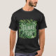 Ce design de t-shirt transmet un message de conscience de l'environnement et d'espoir pour un avenir durable. L'expression "Avenir durable" est écrite dans un style ludique et manuscrit, ajoutant une touche de personnalité et d'optimisme. Les motifs tourbillonnants de feuilles verts et de fleurs qui l'entourent symbolisent la beauté et la vitalité de la nature, renforçant le thème de la durabilité. Le design général est visuellement attrayant et encourage le porteur à adopter des pratiques écologiques.