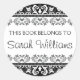 Elégant, élégant, noir et blanc étiquette livre avec vintage dentelle damask bordure haut et bas. Texte : "ce livre appartient à [nom personnalisable]"