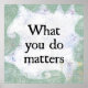Un design de typographie inspirante motivationnelle comporte les mots "Ce que vous faites importe" sur un arrière - plan blanc et vert clair abstrait.