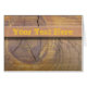 Ein nahes Foto aus Zedernholz mit Rissen, Wasserperlen und einer Schraube auf Kartenabdeckung. Verwenden Sie es als Vorlage oder klicken Sie auf die Schaltfläche "Anpassen", um Text Stil, Farbe und Größe Ihrer Wahl zu ändern, um vorne und innen. Dieses Design passt zu einer Notiz und Grußkartengröße, sodass Sie es als Dankeschön-Notiz verwenden können, oder einfach als leere für eine handgeschriebene Notiz an der Innenseite verlassen. Das Blitzfeld unten zeigt andere Produkte, die dasselbe Design aufweisen