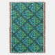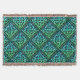 Une couverture jetée avec un noeud bleu-vert celtique a répété le dessin de carreaux de diamant contre un arrière - plan noir. Vous pouvez ajuster la taille du noeud celtique pour le rendre plus petit ou plus grand. Cliquez sur "Customiser" pour commencer.