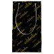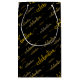 Schwarze Geschenktasche mit Goldfarben in verschiedenen Größen mit der Textfeier in einem Script-Schriftart mit Glyphe. Diese Geschenktasche und Design geht für die meisten Anlässe und Feiern. Dieses moderne und minimalistische Design in Gold auf schwarz macht es elegant und exklusiv. Eine zeitlose und praktische Geschenktasche, die das ganze Jahr über für mehrere Anlässe erhältlich ist. Bestellen Sie diese und nutzen Sie sie für verschiedene Veranstaltungen, sowohl für geschäftliche als auch für private Veranstaltungen.