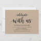 Célébrez avec nous, carte d'invitation pour mariage en fuite. Cette carte d'invitation de mariage rustique kraft est parfaite pour votre réception de mariage et la fête de célébration après le mariage. Ajoutez vos détails dans une police / lettrage noir assorti.