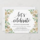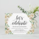 Célébrons, carte d'invitation de réception de mariage en fuite. Cette carte d'invitation au thème printanier neutre est parfaite pour votre réception de mariage / fête de célébration. Ajoutez vos détails dans une police / lettrage noir assorti.