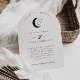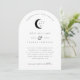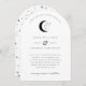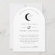 Ein minimalistisch bogenförmiger Himmelsmond und sternförmige Hochzeitseinladung mit einem himmlischen Muster auf der Rückseite. Passen Sie die Farbe des Mondes und des Sterns, den Hintergrund und den gesamten Text in diesem Design an.