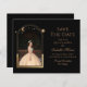 Celestial Black Save the Date Geburtstag Quinceanera Einladung zeigt eine goldene Sonne, Mond und Sterne Rahmen auf einem schwarzen Hintergrund. Inside ist Ihr Lieblings-Foto und Ihre individuelle Quinceanera Save the Date Informationen. Personalisieren Sie diese, indem Sie den Text in den Textfeldern bearbeiten und Ihr bevorzugtes Foto hinzufügen. Entwickelt für Sie von ©2024 Evco Studio www.zazzle.com/store/evcostudio
