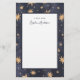 Dieses elegante und moderne Schreibwarengeschäft besticht durch einen reichen marineblauen Hintergrund mit eleganten Imitaten, goldenen Sternen und einem weißen Stadtteil, in dem Sie Ihren Brief schreiben können.