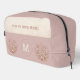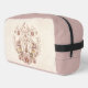 Trendy cotattacore Pilz ästhetische Himmelspilze und Moth Girly Dopp Kit, Toilettenbeutel in ''Rose gold' - duskyrosa, taupe Farben, mit einem personalisierten Text und Monogramm, die hellbeige Teile sind mit alten Leinwand Textur. Personalisieren Sie den Text einfach oder verließ ihn leer. Kate Eden Art
