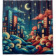 "Celestial Cityscape with Whimsical Waves" Duschvorhang
