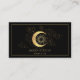 Eine himmlische ätherische Visitenkarte mit einem modernen Goldmond und Sternen auf schwarzem Hintergrund.