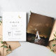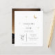 Eine minimalistische, moderne himmlische Hochzeitseinladung zeichnet sich durch ein schlichtes und elegantes Design aus. Es beinhaltet einen vergoldeten Mondfilm und Sterne, die sanft glitzern, Set vor einem sauberen Hintergrund. Die Einladung benutzt klassische Serifentypografie, die eine traditionelle und formale Touch mit ihrem gepflegten und klaren Stil hinzufügt. Die Kombination aus modernem Design, glänzenden Golddetails und zeitlosen Schriftart macht die Einladung zu einem unvergesslichen und einladenden Tag.