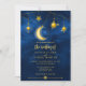 Dieses wunderschöne Aquarelldesign besticht durch einen glühenden Halbmond mit Sternen und Planeten auf einem blauen Himmelshintergrund Mitternacht. Die Rückseite der Karte hat den gleichen Hintergrund am Nachthimmel um Mitternacht, der durch einen großen glühenden Halbmond gekennzeichnet ist. Diese schöne Einladung ist Teil einer passenden Hochzeitssuite, die personalisiert sein kann.