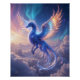 Ein majestätischer, edler Greifen, der mit himmlischem Himmelslicht in Saphirblau, Amethyst lila und sonnengeküsstem Gold schimmert. Die Federn und das Fell leuchten sanft und reflektieren die kosmische Strahlung. Die kräftigen Flügel des Greifen verließ Spuren glitzernder, schimmernder Energie durch einen blühenden Himmel, der mit schwindenden Polarlichtern und sanften, pastellfarbenen Wolken gefüllt ist. Die Szene strahlt ein Gefühl von Fantasiemajestät und göttlicher Gnade aus und erfasst die majestätische Präsenz der Kreatur vor einem blendenden, sonst weltlichen Hintergrund. Das Ambiente ist gleichermaßen beeindruckend und gemütlich und unterstreicht die edle und magische Natur des Greifen.