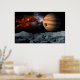 Digitale Collage mit einer Si-Fi-Mondlandschaft, einem bunten Nebel und einem Gasriesen im Sternenhimmel.