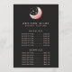 Celestial Rose Gold Crescent Moon Service Preis Menü. Dieses elegante, moderne und trendige Business-Design besticht durch einen Mond und Sterne auf einem soliden schwarzen Hintergrund.