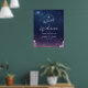 Herzlich willkommen zu einer Nacht der Magie und Romantik mit diesem himmlischen Begrüßungszeichen. Dieses Design mit einem tiefen Sternenhimmel aus Marine und Violett, weichen Wolken und einem zarten, liebevollen Monogramm an der Spitze Set einen traumhaften Ton für Ihre Feier. Dieses Schild ist perfekt für Hochzeiten mit Sternen, Kosmischen oder romantischen Themen geeignet und bildet einen wunderschönen Rahmen für Ihre Namen und Ihren Hochzeitstag. Einfache Personalisierung des Textes, um einen atemberaubenden ersten Eindruck für Ihren besonderen Tag unter den Sternen zu schaffen.