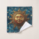 Amid a starry celestial background, the serene face of a stylized golden sun.