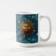 Amid a starry celestial background, the serene face of a stylized golden sun.