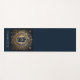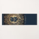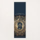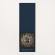 Der antike himmlische Mond steht gegenüber der Yoga-Matte, personalisiert mit Ihrem Namen in einem geblüht Dekorationstyp, auf einem dunkelblauen Hintergrund. kühl und ätherisch.