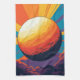 The Celestial Sunset Kitchen Towel features a radiant, planet-like sphere glowing with bold hues of orange, gold, violet, and blue. This abstract, space-inspired design transforms a practical kitchen essential into a vibrant piece of functional art. Whether drying dishes or hanging on display, this towel brings modern energy and visual warmth to your culinary space.