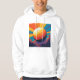 The Celestial Sunset T-Shirt Hoodie blends the casual ease of a tee with the added edge of a hood—featuring a glowing, planet-like sphere surrounded by vibrant beams of orange, yellow, purple, and blue. This abstract, space-inspired design makes it the perfect choice for cool evenings, creative days, or whenever you want to wear the universe on your back. Soft, stylish, and full of personality.