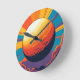 The Celestial Sunset Wall Clock features a radiant, planet-like sphere surrounded by bold beams of orange, gold, violet, and blue—bringing the magic of a galactic sunset to your wall. This space-inspired abstract design transforms a practical timepiece into a captivating work of art. Perfect for modern living rooms, creative studios, or any space that needs both function and visual impact.