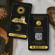 Eine wunderschöne schwarz-goldene himmlische Tarot- und Mondtiger-Visitenkarte. Eine einfache und berufliche Art, Ihr Unternehmen vorzustellen. Passen Sie das Firmenlogo und den QR Code an und erstellen Sie Ihre eigene Visitenkarte. In dieser Visitenkarte enthaltene Symbole der sozialen Medien. Ideal für Tarot-Leser und Energiehändler.
