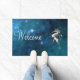 Wunderschönes Vintag heraltrockenes Einhorn-Illustrations-Set auf Himmelshöhle Hintergrund. Anpassen mit Namen oder anderen Texten im weißen Skript-Schriftart.