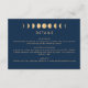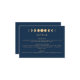 Fügen Sie Ihrer Veranstaltung mit unserer Celestial Wedding Enclosure Card eine Touch kosmischer Eleganz hinzu. Tauchen Sie ein in die bezaubernde Einfachheit unseres Designs und reflektieren Sie die faszinierende Magie der Himmelskörper. Unser trendiges, aber zeitloses Design zeigt eine Reihe von Mondphasen, die in Gold auf einer beeindruckenden marineblauen Kulisse dargestellt werden. Diese Touch von Gold verleiht dem coolen dunkelblauen Sockel ein warmes und zauberhaftes Ambiente, das den einladenden Reiz des Stückes noch verstärkt. Das Design ist minimalistisch gehalten, sodass die himmlischen Elemente wirklich glänzen. Sie können ganz einfach auf Ihre Bedürfnisse zugeschnitten werden, um sicherzustellen, dass jedes Stück Ihren eigenen Stil widerspiegelt.