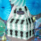 Cello Muster in aquamarin, weiß und schwarz.