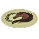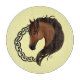 Ein braunes Pferdeprofil mit einem keltischen Stammesknoten funktioniert in einem Kreis mit gelbem Hintergrund