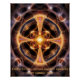Symmetrisches Design mit leuchtenden Elementen, die einem Kreuz- oder Sternexplosion-Muster ähneln. Hier ist eine detaillierte Beschreibung: Im Zentrum des Bildes gibt es einen hellen, strahlenden Punkt, der Lichttendrillen in mehrere Richtungen aussendet. Das zentrale Licht ist goldgelb und breitet sich nach außen in einer komplexen, webartigen Formation aus, die eine symmetrische Form schafft, die an ein Kreuz oder eine Mandala erinnert. Das Design vereint die kräftigen Orange- und Gelbtöne, die Wärme und Energie repräsentieren, mit cooleren Blau- und Weißakzenten an den Rändern und schafft so ein Gleichgewicht zwischen Wärme und Kälte. Die Leuchtkörper geben den Eindruck einer Bio, fließenden Bewegung, fast wie neuronale Netzwerke oder verzweigter Blitze, die der ansonsten statischen Struktur ein Gefühl der dynamischen Bewegung verleihen. Es gibt kreisförmige Lichtknoten, die symmetrisch um das Kreuz angeordnet sind, jede leuchtet sanft und trägt zum himmlischen, fast kosmischen Gefühl des Bildes bei. Insgesamt erinnert das Bild an die Themen Energie, Spiritualität und kosmische Balance, mit einer mystischen, ätherischen Qualität für das abstrakte Design. Die Mischung von warmen und coolen Farben verleiht dem Stück mehr Tiefe und Kontrast, was den visuellen Effekt des Stückes verstärkt.