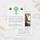 Erinnern Sie sich an Ihre Lieben im Gebet mit diesem wunderschönen traditionellen Bild eines grünen keltischen Kreuzes mit irischen Kleeblättern. Diese wunderschönen Gedenkkarten für Beerdigungen werden häufig auf Beerdigungen verteilt als Erinnerung, um für die Verstorbenen zu beten. Alle Texte und Schriften können geändert werden.